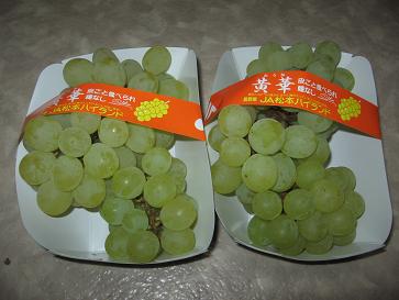 『 黄 華 』ゲッチュ(*^。^*)松本市のブドウ栽培農家が育成した品種。このブドウも皮ごと食べられます。「ナガノパープル」に比べ、さっぱり系の味わいです。これから、実家の姫路に帰省しますため、甥っ子・姪っ子へのお土産です。さらに、「つがる」と「幸水」を。当然、「ナガノパープル」もありますが、冷蔵中です。これからの出発ですが、雨は大丈夫かな???σ(・_・)は雨男ではない・・・