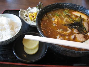 『大間味屋』日替わり定食南木曽町駅前 700円??当日は、もつうどん定食でした。もつはしっかりとした味付けとなっています。丼が持てないくらい熱いです。出汁はもう少し、少なくてもいいのでは・・飲みきれませんでした。7月下旬の暑い日に頂きました(*^。^*)