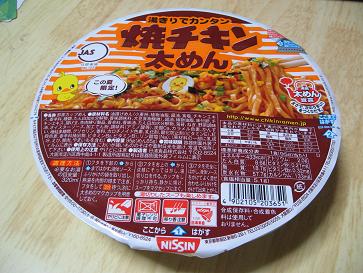 『焼チキン太めん』168円チキラーとしては、食さなければ(^^ゞゆで汁は、スープとして利用するため、少な目のお湯で茹でるほうが良いかも。うーーん、汁有りのラーメンがいい・・・