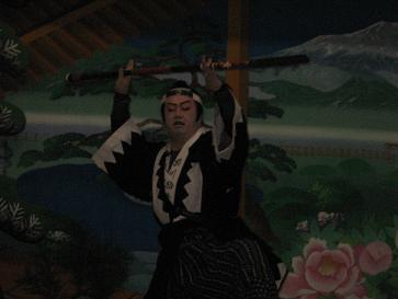 上松若宮八幡宮『芸ざらい』3いよいよ、ラストです。『忠臣蔵七段目』忠臣蔵のスパイラルな話です。兄と妹。討ち入り前の話です・・『横川勘兵衛』討ち入り前の兄弟のお話。弟・勘兵衛が悪態をつきますが、兄は弟の心を知ろうとします。弟の心根が腐っていないことを知った兄は、弟に伝家の槍を渡し、一番槍の手柄を願う。兄弟愛です。『だんまり』新入りの、顔見せです。なんか、ほのぼのしています。先輩たちが、楽屋裏から楽しげに見守っています(*^。^*)最後はベテランが登場して、締めをします。いやー、長い長い夜の演芸でした。