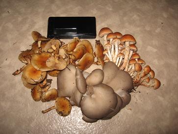 山のキノコをゲッチュ(*^。^*)野生のものではなく、栽培ものですが、『ヒラタケ』『クリタケ』『なめこ』です。全てを鍋に投げ込み、味噌汁でいただきました(*^。^*)