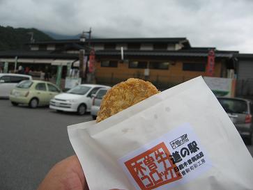 『木曽牛コロッケ』日義 道の駅150円 ゲッチュ(*^。^*)現在、木曽の中で進められている、木曽牛プロジェクトの中で、商品化されたもので、人気、大人気で、日義の道の駅では、土日の限定販売となっています。牛半身を入手し、骨の髄までエキスを搾り出して作っています(*^。^*)平日は食堂で「コロッケ定食」があるか・・三岳の道の駅でも、木曽牛コロッケを販売中です。