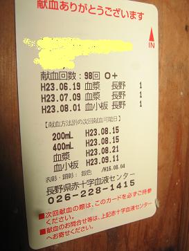 昨年、献血をやりすぎたためか、血小板献血が、40日以上の間隔が必要です。今週、血漿にいくか、9月11日まで待つか??目標の100回まで、あと2回です(*^。^*)