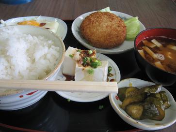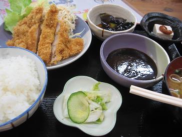 とんちんかん『チキンカツ定食』700円8月8日(月)南木曽町南木曽駅前にある食堂&居酒屋です(*^。^*)漬物に豆腐、なすの味噌がけと小鉢が結構付きます。ご飯のお代わりも何となく自由って感じです。ただ、チキンカツを味噌で頂くのに、ナスも同じでは、少しくどく感じます(^^ゞ何か、さっぱりしたものが欲しいですね。