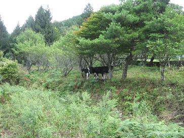 牛(ホルスタイン)は何頭いるでしょうか?正解は3頭です。仲良く、かたまっています(*^。^*)分かりますかね?