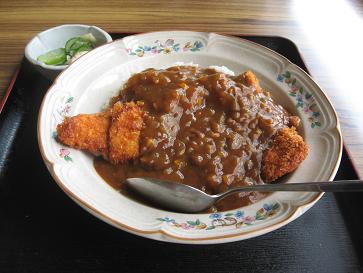 ドライブイン峠『チキンカツカレー』500円8月23日(火)木祖村以前訪問時に気になっていたので、注文を。油っ気の無いチキンカツが、いいです(*^。^*)同僚と入店して、同僚は『焼きそば(ソース)』を注文。原価、130円くらいかなと、少し悲しげな文句を・・その焼きそばが出てきた後に、カツを揚げる音が・・かなり、個性的な仕事配分ですね(^^ゞ