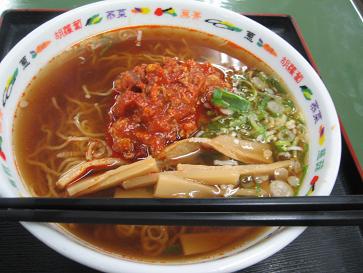 恵那峡SA『辛いらーめん』600円??8月17日(水)中津川市今までのラーメン(食べたことはないが(^^ゞ)に辛味を載せただけのような感じですね。親父の初盆から信州に帰るときに頂きました。今年、71杯目。