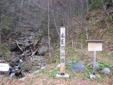 『木曽川源流』の碑です。鉢盛山は、木曽川の源流でもあります。『母なる川ここに生まるる』と、横には書かれています。この先に、源流の先っちょがあるのでしょうが、今回の目的は、こちらではなく(次回に)・・ここに来るまでには、味噌川ダムの奥にある、この門を開けて入らなければなりません。中部森林管理局、木曽森林管理署の許可が必要です。(ただし、許可はそんなに難しくないようです。 少人数では厳しいそうですが、グループになるといいそうですよ・・)