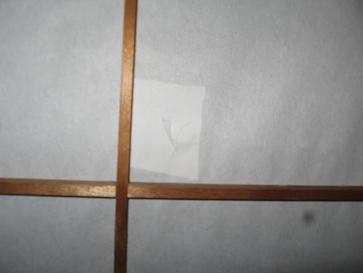 今日、障子を張り替えました。なのに、さっそくやっちゃいました(^^ゞでも、これって窓の構造にも問題ありです。ほら、取っ手が飛び出しています・・前の住民が障子の張替えをしてくれていなかったので、昨年4月の入居から、気になっていたのですが、やや、冷たい隙間風が出てきたので。障子紙は、ぱっさぱっさのパリパリになっていましたね。