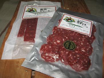 『鹿肉のジャーキー』&『鹿肉サラミ』ジビエ続きで(*^。^*)木曽農協祭にも無料提供されていた品。鹿肉のジャーキーとサラミ。サラミの脂は何かと思うと、豚の脂みたいです(*^。^*)ジャーキー、サラミともに違和感は無いのですが、やはり鹿って感じが。牛とは違うって、言うだけで、何となく細胞が細かい感じ。うーーん、滑らか??ねっとり??そんな、感じです。美味しいのは、間違いなし(*^。^*)