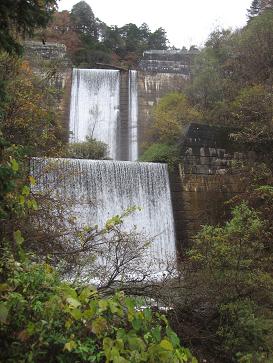 南木曽町与川の奥にあります。自然の滝ではありませんが・・1段目には倒木があり、一部流れが止まっています。3段目は、少し小さ目となっています。見事な3段の滝です(*^。^*)