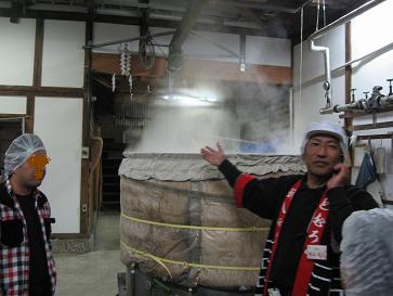 須坂市にある「遠藤酒造」さんで酒蔵開き。敬意を表して『酒蔵見学ツアー』に(*^。^*)なんと、説明をしていただいたのが杜氏の勝山敬三さん。販売されている日本酒のラベルに名前が書かれている方です。丁寧な説明で、日本酒の製造工程が分りやすかったですね。蔵の中には製造中の日本酒の素がありましたが・・製造中の過程を分りやすく展示してくれていますよね。まじに、発酵しているので、プクプクと泡が出ていますよ(*^。^*)一度、臥竜公園に行き、名物おでんを頂きました。そんなに黒くないのでは・・黒いのか??桜も咲いていたのですが、画像はなし。花より・・今夏の蔵開きでゲッチュしたもの。修了証書。ピンクの利き猪口とクリア升。共に来年にと思っても、無理です(^^ゞ