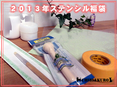 おはようございます。たくさんの方にご訪問いただきまして本当にありがとうございますm(__)mお休み中にご注文頂きましたお客様の発送については、入金確認ができ次第、本日より発送させて頂ますのでもうしばらくお待ちください。本日より数量限定で【送料無料 ステンシル福袋】の販売を始めます。セット内容は■一般インク 約40gx2種類(黒・白・赤・青・黄)■黒・白発泡インクor金・銀インク 約20gx1種類*発砲インクor金銀インク不要の場合は一般インクに変更可能です。■Leafステンシル用筆(1号) 1本■ハマナカ スポンジタッチLサイズ 1本■3M マスキングテープ20mmx18m 1個ステンシルプレート 2種類お値段は送料込の1500円ステンシルに興味があるけど始められなかった方に大変おすすめのセットです。詳しくはこちらをご覧ください。【送料無料】★福袋★ステンシルを初めての人におすすめ!ステンシルキット2013ひらがなステンシルの販売も始めました。お子様のお名前やオリジナルTシャツ作りにいかがでしょうか?英語・数字ステンシルもリニューアルしました。ぜひご覧下さいね(*^_^*)ご訪問ありがとうございました ブログランキング参加中 応援して頂けると嬉しいです