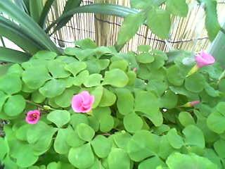 カタバミが青々と、ピンクのお花が蕾をつけてる♪
