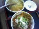 温泉たまご(風)と細ネギをのせて食べる。