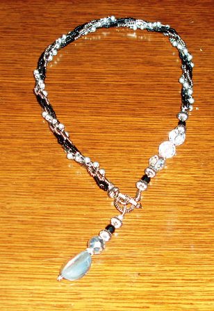 午前中は強い雨が降っていましたが、午後からは晴れたので久しぶりにお買い物に出かけました。自転車で行こうと思いましたが、すっかり回復したわけではないのでバスで出かけました。 バスで出かけると、待っている時や乗車中に本が読めるのが、いいですね。 さてさて今回は、悪戦苦闘したチョーカーが出来上がりました基本的には、昨日のブレスレッドと同じ編み方なのですがビーズの大きさが違うのと模様になっているので糸通しと目を拾うのが大変でした。大きなビーズの下に小さなビーズが隠れてしまったり二つ一緒に編んでしまったりと何度も編みなおしました。おかしい所を見つけるのに、目の良い息子に見てもらったりして 仕上げるのに 丸三日はかかってしまいました。これが、今回の講座の一番の難関だったかもしれません。やれやれデス~(^^ゞ