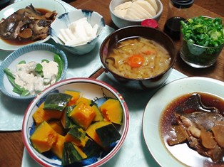 明日は、月に二回のリサイクルごみの収集日ペットボトル・トレイ・衣料・ダンボールなどの紙類思い切って、いらない服の整理をしてダンボール類もたたんで、出した。今夜は、息子も読まなくなった雑誌類を整理して出すらしい。 今夜のわが家の玄関先は、大変なことになっている明日の朝、回収の方達が驚くかもしれません(@_@;) 今回の母の引越しは、向こうに戻るつもりが無いので全部持ってくるつもりなので、わが家に収まりきるのかが、とっても心配 最後は、私お得意の 「何とかなるさ~」(^_-)-☆ 今夜の晩御飯はカレイの煮付け 南瓜のたいたん スナップエンドウ 山芋 お野菜たっぷりのお味噌汁 あんまり手間のかからない物を並べさてて貰いました(^^ゞ