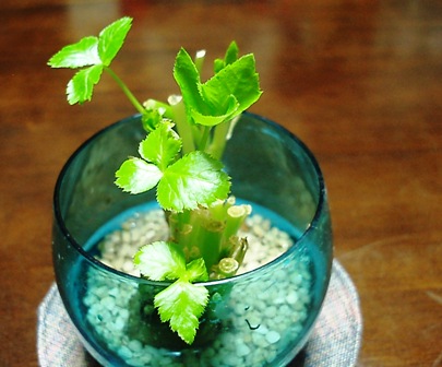部屋にちょっとしたグリーンがあるといいな~って花屋さんのまえで ミニ観葉植物を見るのだけれどちと お高いどれにしようかと 迷って 決断できずに 帰ってきます これに グリーンを入れたら 可愛いだろうなと容器ばかりが 溜まってしまって で三つ葉の根っこを 入れてみたら可愛い葉っぱが出てきました お料理に使うまで目を楽しませてもらいます