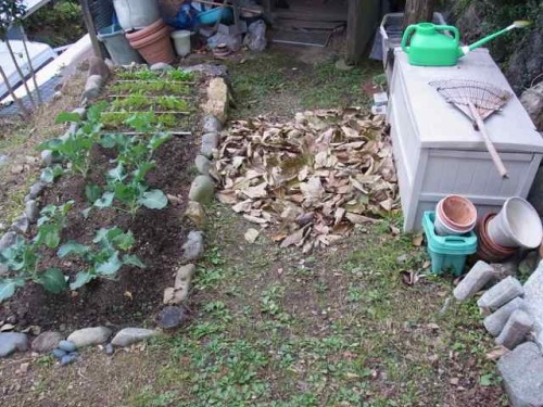 段々畑に建っているわが家の家。上の畑に植えてある柿の木の葉っぱが、先日の大風で全部うちの庭に降り注いでくれました。辺りはこんな感じ・・・・なんてこった・・・。仕方がありません、片付けるしか・・・・。とりあえず一カ所に寄せるところまでやっておきました。大量の落ち葉・・・今までなら悩むところですが、今年は大丈夫。「たい肥作り」に有効利用してあげましょう。せっかくのチャンス・・・逃しませんよ〜(笑)。*へぇ~とか、うんうんと思われたら、こちら↓をポチッとおねがいします!*にほんブログ村