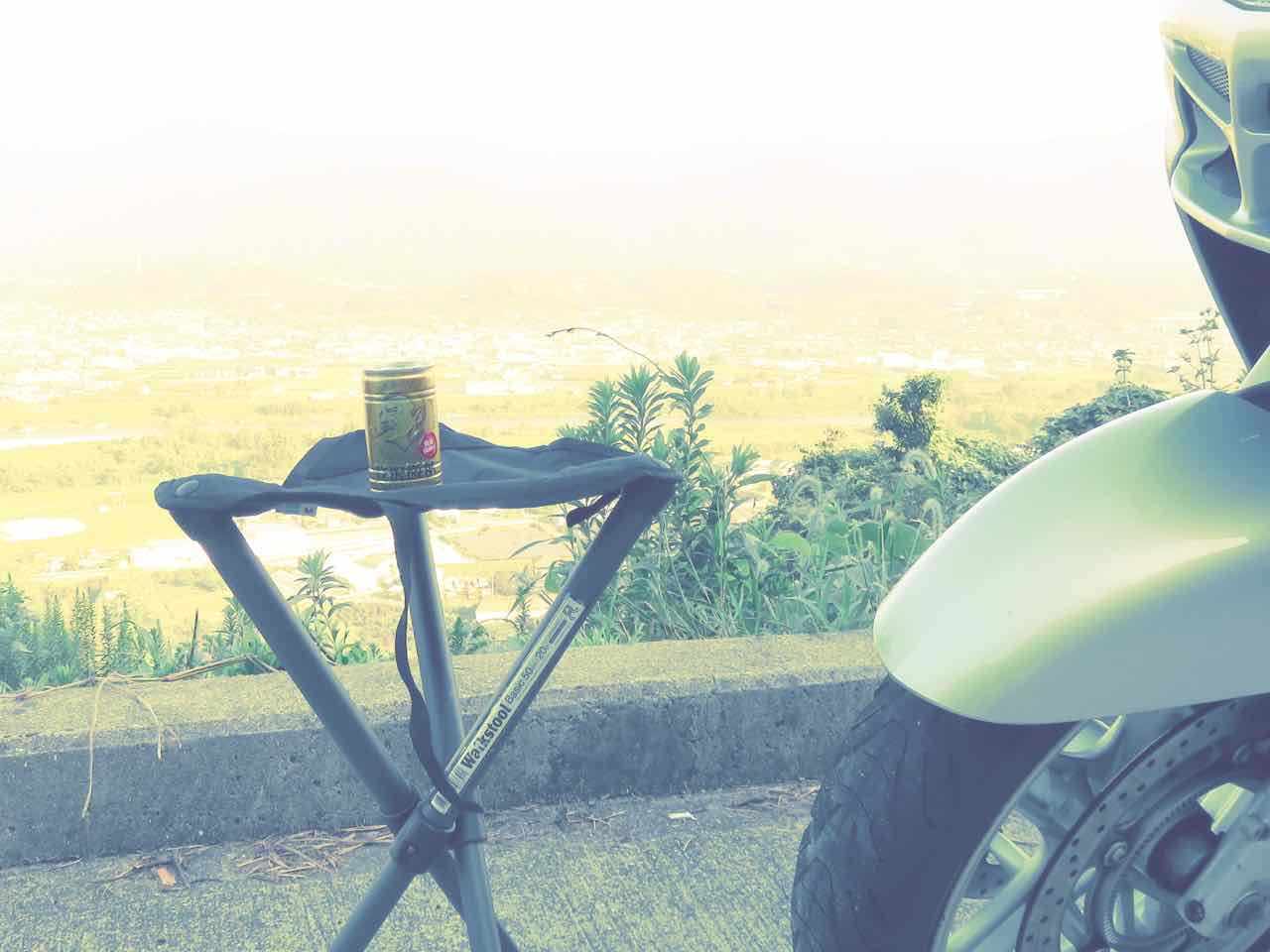 ですから、銀ちゃんの左パニアに入れてあるウォークスツールのイスを取り出して、ゆっくりと眼下の景色を眺めながら、1本の缶コーヒーを味わうこともできるようになりました。