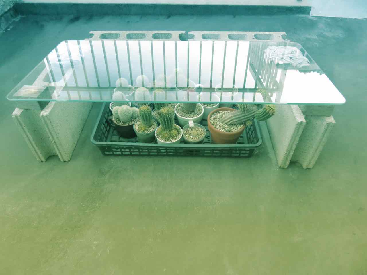 (ここがわが家の日当たり一等地です。さあ、これから秋の生長期に入ります。存分に大きくなれよ、子供たちのサボテンたち!!(笑))
