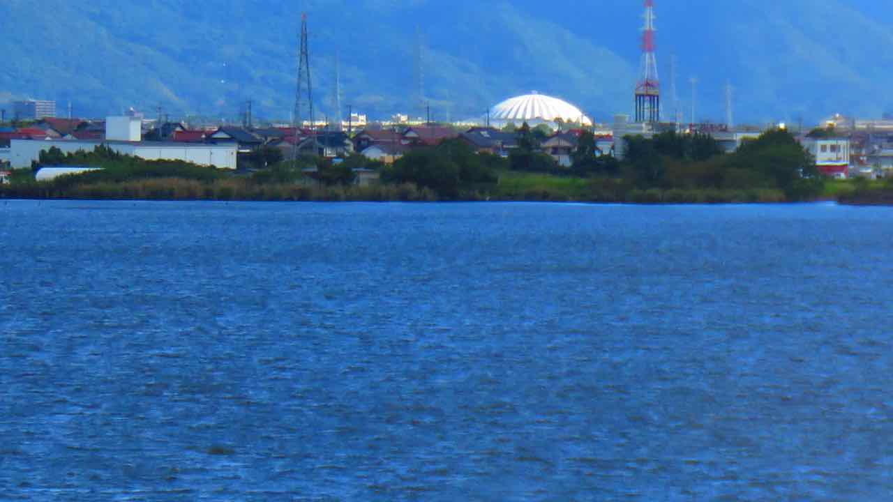朝になってようやく周囲の景色が見えるようになり、神西湖のレークビューを楽しんでいます。