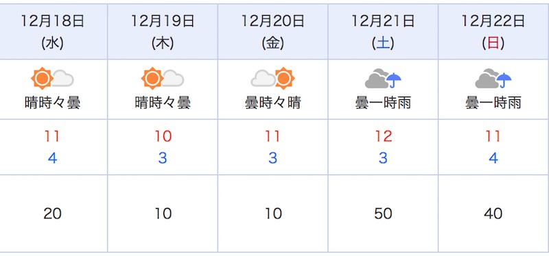 週末に天気が崩れ、しかも雨マークが表示されていないのに、実際は雨が断続的に降り続きます。