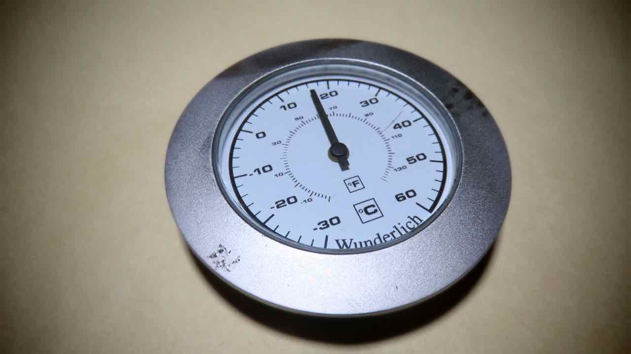 ハンドルのキャップのところに取り付けるようになっている、ワンダーリッヒ製の温度計。