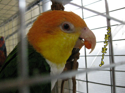 クリンは9月に1歳を超えたところ。最近初めて発情らしい発情中のようだ。ケージの敷き紙をはみはみしているところへ行くと「がぁぁぁ!」と怒られる。それだけならまだしも、菜々ちんにまで八つ当たり!そんな訳で最近エン様のお隣へ1羽だけ移されてお仕置きされたりしています~。エン様に怒られてものんきにお歌歌って、全然お仕置きになってないけど。八つ当たりの被害を受ける菜々ちん。「最近、あの子おこりっぽいのよね~♪」菜々ちんは4月で1歳なので、そろそろ発情もありそうだけど、今のところ食べ物にしか興味はない様子(笑)ずーっとお子様でいてくだされや~。菜々ちんのかわいいお目目が大好きだよ♪