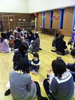 昨日は葛飾公民館でクリスマス交流会でした♪ご参加の皆様、ありがとうございました!!グループに別れてお話中・・・皆さんベビーサイン実践中です♪さて、クリスマス会が終わると、次は年末年始って感じですね。最近第6回が終了したクラスが多く、色々ご感想をいただいているんですが、その中に「おばあちゃんとのつながりが、とっても強くりました」とのお話が多いので、それについて書こうと思います。ズバリ、ベビーサインは「家族の絆を強めるもの」と言っていいと思います。普段はお母さんと赤ちゃんがクラスに参加してくださっているので、母子のつながりがクローズアップされがちです。そこにお父さんが徐々に加わって来るというイメージです実際はさらに広がって、おじいちゃんおばあちゃんもベビーサインの虜になっているんですよね最近伺ったAちゃんの場合。「今Aちゃんなんて言っているの?」おばあちゃんがサインを見て質問しました。「今【ありがとう】って言ってるよ。」 おばあちゃんが大感激したのは言うまでもありませんその後たくさんサインを覚えて下さるおばあちゃんも大勢いらっしゃいます。昔ながらの身振り手振りもありますし、そんなに抵抗の無い方が多い気がします。ベビーサインをしていると、まさか赤ちゃんがそこまで考えているなんて!という場面がたくさん生まれます。そして、赤ちゃんを尊敬する気持ちになり、赤ちゃんともっとやり取りをしたいと思い、赤ちゃんの可能性にワクワクする毎日が送れます少しコツは必要ですが、適切な時期に、適切な働きかけで是非サインを育児に取り入れていただきたいと思いますクラスではたくさんコツをお話していますので、楽しみにしてくださいね こちらも始めました。学び舎サウンド・マインド↑Facebookページはこちら。ページ右上のいいね!をクリックお願いしますm(_ _)m ↑よろしければ1クリックご協力お願いします♪ 毎日楽しく、前向きに過ごせれば・・・!と思いますね。ベビーサインは楽しみながらそれができます♪ *「ありがとう」のサイン口に向かって指の腹を向け、前に倒す。投げキッスのような動き。(ベビーサインは同じ意味でもいろいろ種類があります。こちらで紹介しているのは、我が家で使用しているものです。) 〈おててであのね開催地区〉■お問い合わせはこちらからどうぞ■★告知前でもご予約可能です。月齢に合わせてスタートできます。★※ご質問が多いので・・・ 体験会なしで1回目からのご参加も大歓迎です タイミングがスタート後でしたら、2回目からのご参加も可。 5名以上集まればおトクな出張教室もあります(体験OKです)。 移動なし・お友達同士のクラスも楽しいですね。 いつも皆さんの口コミでお集まりいただいています。 感謝感謝ですありがとうございます!稲毛(キッズカフェ@街の駅オークヒル) 1月クラス募集開始♪ 【体験日】12/13 10:30 (開催日変更になりました!) 基本火曜日です。お問い合わせいつでもどうぞ。 キッズスペースがとっても綺麗です。駐車場有り。 千葉寺(千葉市ハーモニープラザ) 2月クラス募集開始♪ 【体験日】1月24日10:30 クラスは第3水曜10:30です。船橋(講師自宅) 1月クラス募集中 【体験日】12/20 10:30 クラスは第2水曜13:00を予定。 お友達どうしで、本講座希望の方5名以上集まりましたら、 いつでも自宅クラス開講いたします。ご相談ください。葛飾(葛飾シンフォニーヒルズ) 次回3月クラスを募集! 第1水曜10:30 (開催日変更になりました!) 【体験日】2/1(水)10:30 を予定。 お問い合わせお待ちしてます♪親学ひろば親子であのね お仲間募集中! 詳しくはこちらをご覧ください。 船橋は随時参加OKです。【体験日】1/12 10:30 出張・体験もOK♪お友達が集まったらお問い合わせください。