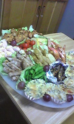誕生日パーティーしました。一升餅は背負って歩けませんでした。支えて立たせても重たいからか号泣。ケーキは大喜びで手を突っ込んで食べました。写真は大人用料理とかんちゃんのお誕生日プレートです。