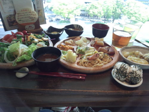 先週ディズニーに行ったときに、一眼の調子がちょっとおかしかったからキャノンのサービスセンターに行ってきました。10時からなのですが10時半過ぎに行き、すぐに用件は終わりました。カメラの方は、接触不良で、使用してたらなるもので、電気屋さんの5年間保証で修理できるということで、一旦持ち帰り再度購入したヤマダ電機に持っていくことになりました。ということで、11時前には用件が終わりちょっと早いのですが、栄でランチに行くことにし、車を止めぐるなびのポイントでランチのできるお店に行ってみるとまだお店が開いてない… 時間を確認すると11時30分からまだ25分程あります。待ってもいいのですが、上の娘は13時20分から授業がある為遅くとも12時50分には電車に乗らないといけないってことで、ずっと行きたいと行っていたモクモクファームの『風の葡萄』に行くことにしました。11時過ぎたばかりなので、すぐにテーブルに案内されました。せっかくいいお天気なので、外の見えるカウンター席にしました。早速、野菜中心のメニューから料理を面倒なので一通り食べたいもの全部持ってきちゃいました。おにぎりは、その場で作ってもらえました。気になった変わったお野菜『アイスプラント』ほんのり塩味がするそうなんですが、癖がなく好きな葉っぱでした。その後、食べてみたくて取りに行ったのですが、サラダの飾りな感じだったのですが、新しいサラダが出ても出てこなかった結構高い変わった野菜なのでそんなに数なかったのかな?開店してすぐだったから食べられたのかもね。その後デザートをというか… トマト中心で3皿目最後になぜかデザートではなく、お漬物とおにぎりで〆です。おなかいっぱいトマトいっぱい食べて大満足!!前食べた時といっても年くらい前ですが、1600円だったのでそのつもりだったら、1800円になってさらに消費税分UPで2人で3751円ぐるなびポイントでただランチの予定がちょっと高めのランチになっちゃった…でもいろいろな野菜料理食べれておいしかったからいいかな。レストランで人気!新食感野菜☆☆☆アイスプラント120g【岡山県真庭産】[単品野菜]^【西日本/サラダがキラキラ華やかに/プチプチ食感/塩味/天ぷらや和え物にどうぞ】
