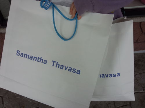 下はカレンダー通り学校、上は月曜日は授業が無いということで、車で30分程のプレミアムアウトレットモールへ行ってきました。ずっと気になっていたのですが、行く機会がなく、2月に姉と一緒に初めて行って以来、娘と一緒に行きたかったのですが、なかなか行けないでいたんですが、やっと今日行ってきました。第一の目的は、サマンサタバサ店内商品50%OFF、2店購入でさらに10%OFFディズニーとコラボのバックを2点で2万円弱で購入してきました。上の大学用のショルダーと下が修学旅行に持ってくようのトートを予算内で買えました。ペーパーバックは、アウトレット用なので可愛いですが、安っぽい…140店舗もありますが、特にほかに何がほしいわけでもないので、ざっと敷地内を見て回った後、フードコートで休憩タリーズのアイスカフェモカおいしかったけど…氷多くて、飲み終わったら半分くらい氷だったから、『氷少なめ』って言えばよかった。銀だことタリーズで休憩したけど…スタンプカードとかなので、0円。アウトレットでサマンサとか購入してしまうと正規のショップで買うのためらっちゃうね。新製品じゃなくて、ちょっと販売から時期がたっただけで、半額なんだったらそれでもいいかなと思っちゃいますね。またちょっとしたら、今新発売の商品もアウトレットにありそうなので、また出かけて行こうかな。【Samantha Thavasa】【サマンサタバサ】【正規品】正規品 サマンサタバサ ディズニーコレクション クラッシクミニー アストル小(ブラック)