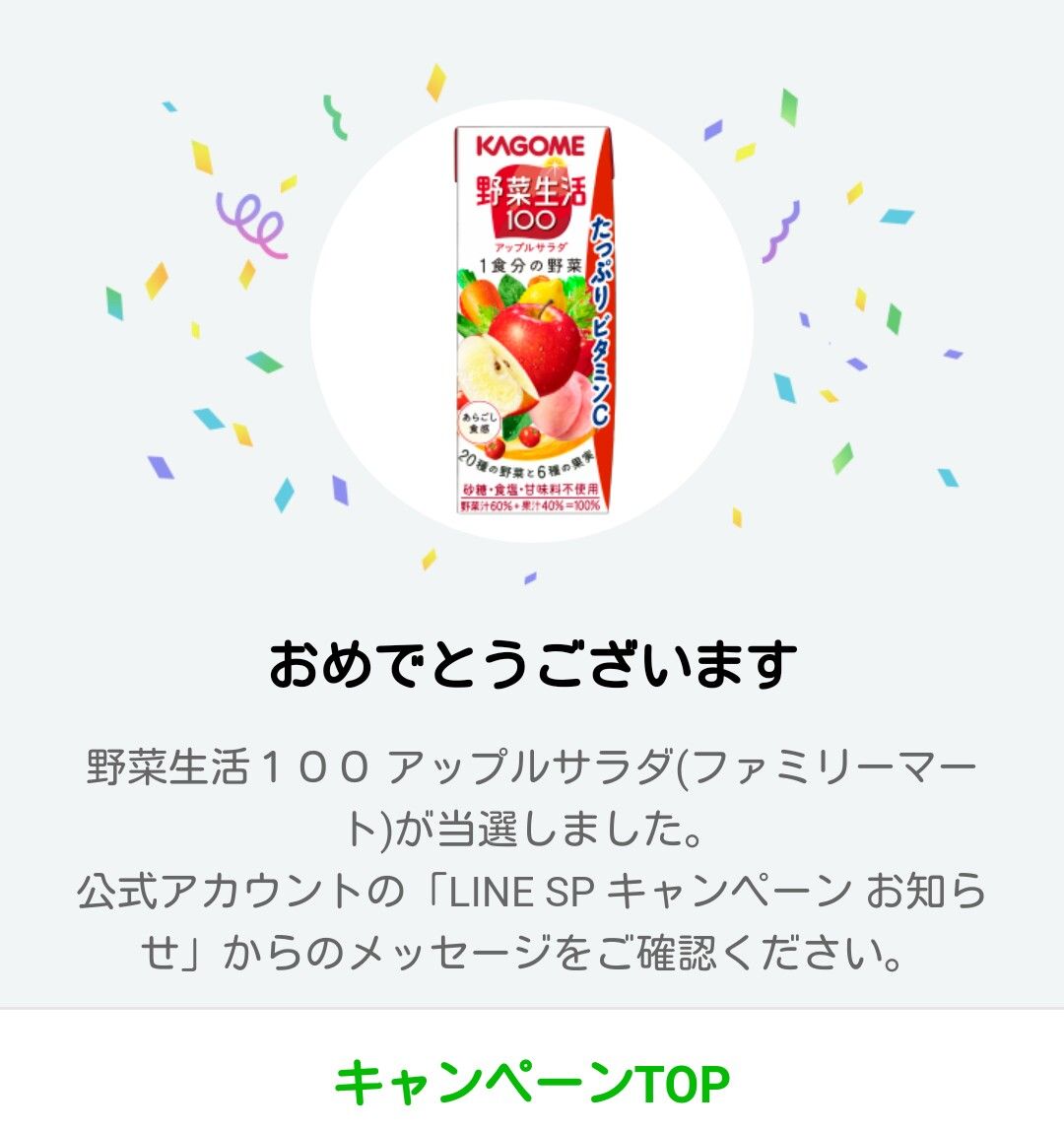 LINEで当たったカゴメの野菜ジュースもね。