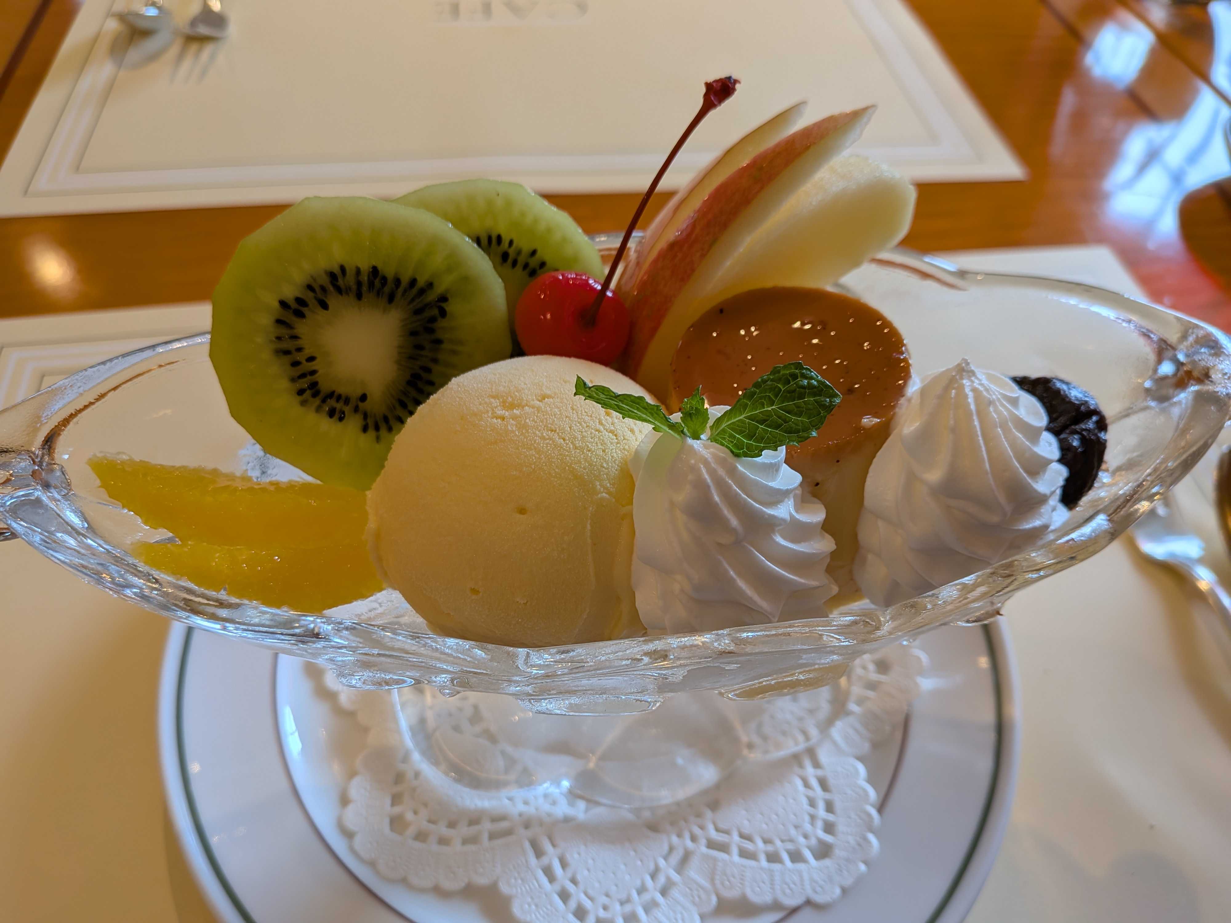 そしてもう一つこちらが発祥の店ということで食べたかったプリンアラモードを🍮