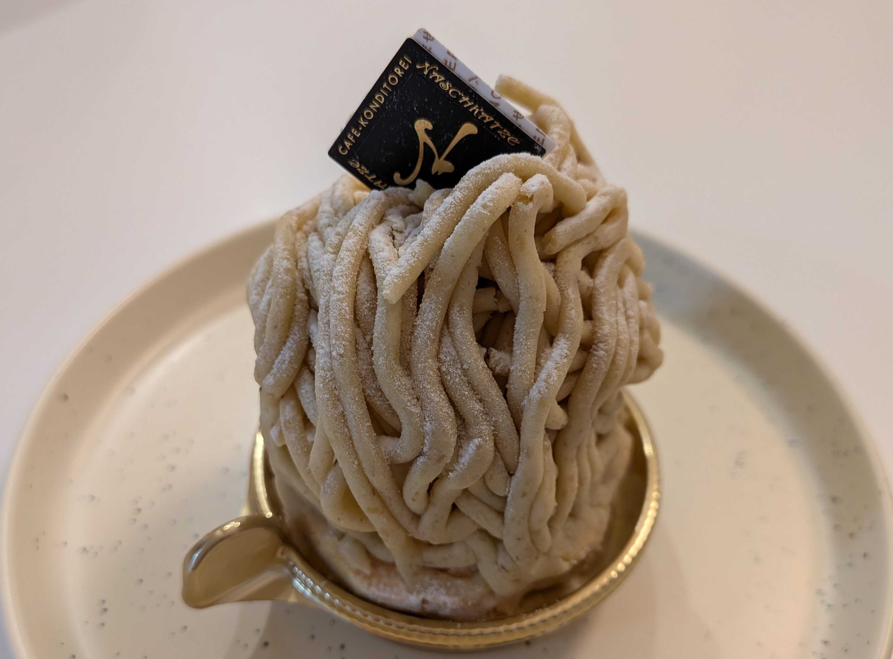 一組ずつしか店内に入れない、モンブラン初めてなら声をかける、など貼り紙が色々ありなかなか個性的な店主でしたが、かなりのお話好きで、関西弁の私がモンブラン好きですって言ったら「このタイプのモンブランを出す店が少なくて関西なら奈良のラ・ペッシュですね」「あ、行った事あります!」と盛り上がりました(笑)