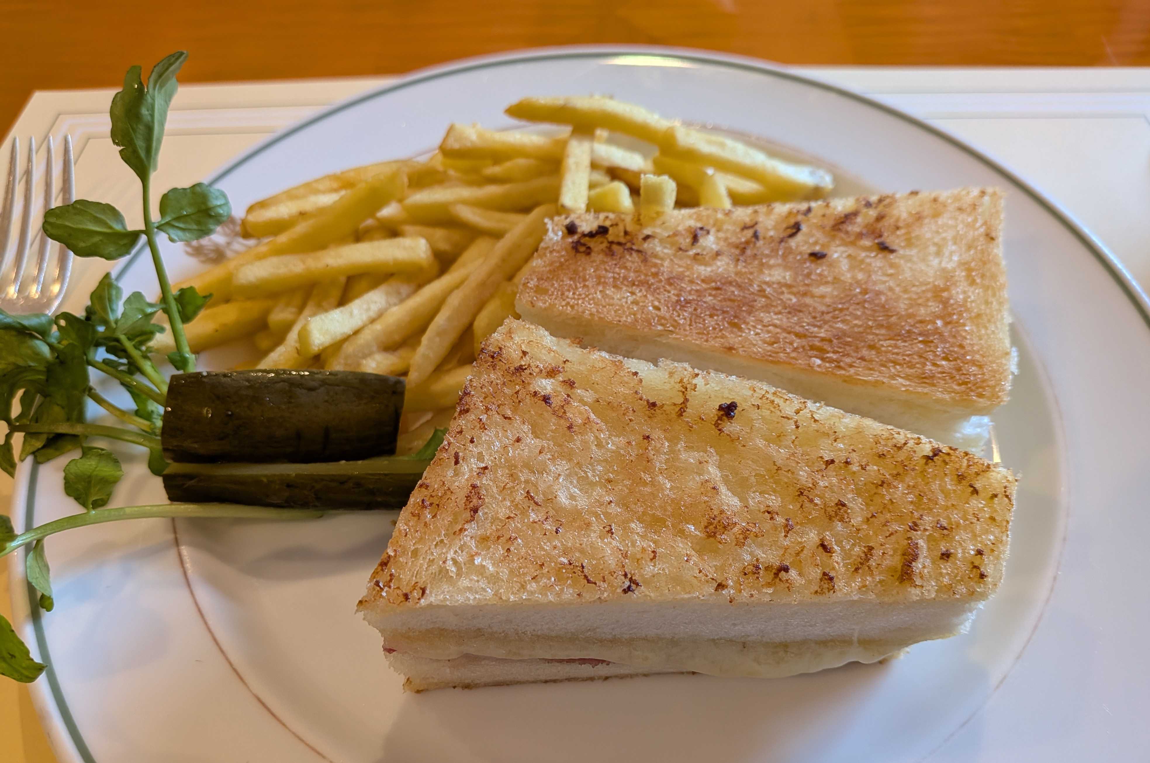 私はクロックムッシュを🥪チーズがとろり。こんなにいっぱいポテト食べれへんって思っていたけれど美味しくて二人で取り合いでした😋