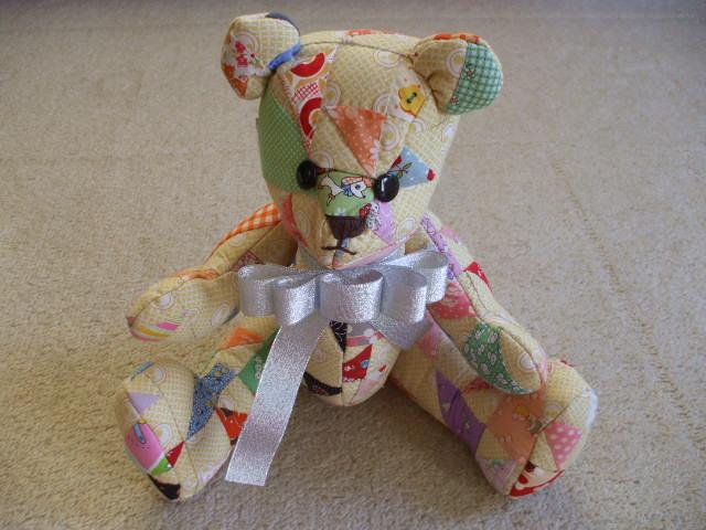 おはよう♪みちくまです。昨日、掃除洗濯を終え、マッサージに行っちゃいました。近くのてもみんです。以前は上半身のみでしたが、昨日は全身。お着替えをして、足のふくらはぎから順番に・・・。結構コリコリだったようで。まぁー、私も自覚症状ありありでしたからね。今まで自分のマッサージじゃこんなところしないぞーと言うところまで。例えば、ひざの裏とか、お尻と太ももの境目というか・・・。男性でしたが、とても親切で力加減もよかったです。上半身もやり、50分コースですが、ちらしの料金使っちゃいましょうと言われて、計60分やってくれちゃいました。ヘッド、目の周りも・・・もうダラーンと言う気持ちで・・・。心地よかったです。改めて、全身お疲れモードだったんですねぇー。パンパンだったふくらはぎ、少し取れました。私は太ったせいでこの太さ?と思っていましたからね。いやいや、それもあるでしょう。また来月行きたいなぁ?と。Jちゃんも行きたがっていましたからね。で、やっとやっと、デジカメでブログに写真を載せる事が・・・。どこにファイルがいっているのかがわかっていなくて。以前と違う場所でしたから・・・。卒業最終日に提出したテディベア。本当に大変でした。簡単だぁーと思っていたけど・・これがどうして。以前もアップしましたが、小さいパターンをいくつもいくつも同じものを作って、ある程度の大きさに。キルトをして、型紙をあててカット。あとはパーツパーツのつなぎ合わせ。ミシンでやりますが、まぁー布が重なっているので、縫いづらいです。でも、時間が出来たら、また作りたいなぁ?今度はうさちゃんを作ってみたい。この顔で、耳たれうさちゃん。うーん、どうでしょうかぁ。まぁー、時間が出来たらの話です。さぁー、今日は銀行周りです。終わったら、衣替えしようかな?そして、夕飯何にしようかな?海に行くはずでしたが、昨日、中熊がバイクの修理を始めまして・・・海にいけません。確かに、あの状態だと怖い。で、今日もあちこちは自転車で。疲れるぅー。しょうがないです。直して頂くのですから・・・。頭が下がります。でも・・・♪そんなの関係ネイ・・そんなの関係ネイ・・♪と言いたい。だってー、バイクいじり大好きなんだもの。勝手にやったことだもの・・フーンだぁ。さぁー、お布団干して、掃除して・・行ってきまぁーす。今日は暑いなぁ?今日も自分らしく、無理をしないで行きましょう。