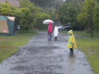 再び今更ですが・・・(;´▽`A``夏休みのキャンプ報告です。 8月20日~22日にスウィートグラスに行ってきました。今回は林間サイトで初の2泊3日!!木陰で涼しくのんびりキャンプしようと思っていたのにな、なんと 最初から最後までずっと雨でした。ガ━━(= ̄□ ̄=)━━ン!! 設営、撤収の時は運良く?小雨だったものの見事な雨でした。(笑)いつか雨に遭遇する日が来ると覚悟はしていたけど・・・ 初めての雨に必死でテントの写真を撮っていませんでした(笑)こんな状況でもキャンプを楽しんでくれた子供達。笑顔に救われます(^▽^;) ほとんどのイベントが中止になる中、キャンプファイヤーだけは予定通り行うことができました。と言っても小雨の中ですけど・・・(笑)インディアンの酋長も出て来てくれて、雨の中1時間位ゲームをして過ごしました。貴重な経験が出来て楽しかったですよ。 ん!? あのクルクル金髪の子は誰!??c(゚.゚*) キャンプファイヤーの罰ゲームでアフロを被せられた長男でした。本人は嫌だったみたいでテンション下がり気味です(笑)でも最後に焼きマシュマロを貰ってニコニコに(*´▽`*) 2日目はダラダラ食事をして、近場の温泉に行って、ママはついでに岩盤浴もして、まったりと過ごしました。 今回のキャンプは朝起きたらスクリーンタープの中に川が出来てたり(笑)家に帰ってからの道具の手入れに苦労したり。特にテントとタープに泥跳ねが凄かったので軽く洗って干して、数日掛かりでしたが・・・(;´ρ`) グッタリその分学ぶことも多くて、雨も怖くなくなりました。<( ̄- ̄)> エッヘン! 特に雨の中でのベテランキャンパーさん達の手際の良さ、お見事です。(*゚▽゚ノノ゙☆パチパチ次回の雨キャンプには是非その技を使わせてもらいます!! ・・・という事でたいした記録もなく夏休みキャンプは終了です。(笑) にほんブログ村