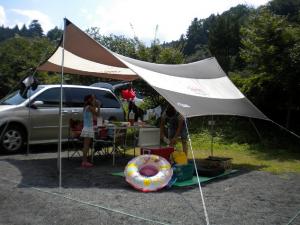 今更ですが・・・夏休みにケニーズ・ファミリー・ビレッジでデイキャンプをして来ました。目的は長男希望の魚釣り&BBQです。一般サイトを利用したんですが、想像以上に狭くて車の横にタープを張ったらいっぱいでテントを張るスペースがありません。(;´▽`A`` 我が家は日帰りなので問題ないんですが宿泊される方は結構困っていました。 気を取り直して、まずは川遊び。凄く冷たい水で大人は足を浸けるのも躊躇してたのに子供達は平気なんだよね~オオーw(*゚o゚*)w しばらく川遊びして↓寒いって言って上がって↓体が温まって再び川へひたすらこの繰り返しでした(笑) メインイベントの魚釣り☆(釣堀)本当はつかみ取り希望だったんだけどね・・・釣った分だけお買い上げしなきゃいけないので長女、長男合わせて4匹でストップさせました(笑)串に刺してもらって サイトで食しました(*´∇`*)子供達が夢中で食べる程の美味しさでしたよ。 ちなみに撤収と同時にゲリラ雷雨に遭いましたが大成功のデイキャンプでした。 (v^ー゚) にほんブログ村
