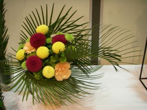 気がついたら、13,000アクセスを迎えていました。ここのところ忙しくて、ブログの更新もままならなかったのに…来てくださった方、ありがとうございました。写真は、先週視察に行った、群馬県のロードオアシス『ららん藤岡』の生け花イベントでみた、ぽんぽんマムとソテツのアレンジ。丸いシルエットがおめでたい雰囲気。