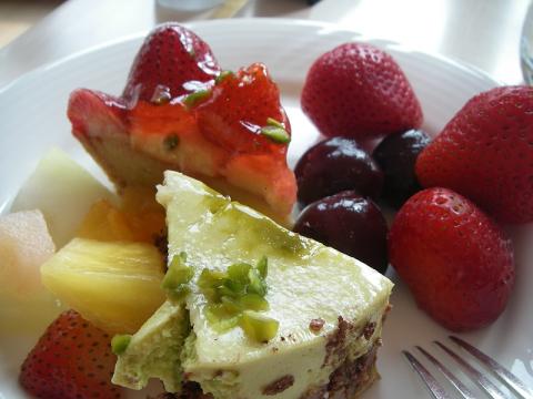 幕張のホテル・ザ・マンハッタンのレストラン ザ・テラスの平日限定 Sweets Time~ウィークデーデザートブッフェ~同じ幕張地区のホテルのブッフェで2回ほど痛い目に遭っていたので、期待しないで出かけたのですが(喫茶店代わりの打ち合わせ会場として選んだのでした…)、グレードの高さにびっくり。仕事が忙しくて昼食もとっていなかったので、甘いもの(デザートメニュー)以外のしょっぱいもの(コールドメニュー・ホットメニュー)の充実ぶりはとても嬉しかった♪かつ、その美味しいこと。写真左は、デザートメニュー:ピスタチオのムースケーキ、イチゴのタルト、ブラックチェリーとストロベリー、ミックスフルーツのサラダそして、写真右はコールドメニュー:バーニャカウダ(生野菜にアンチョビソース、これがめちゃウマ)、ベーコンとホウレンソウと松の実のキッシュ、卵とサーモンのカリカリトースト、フレンチトースト。他にも、パスタやフライドチキン、チキンライス、フライドポテト、スープ、デニッシュ等々もありました。ここら辺のメニューは文字にしてしまうとそこら辺のファミレスと変わらなくなっちゃうんですが…良いシェフがいるホテルで丁寧に作るとすごいのねぇ…!この日はケーキは全部で7種(ピスタチオのムースケーキ、イチゴのタルト、イチゴのショートケーキ、チョコレートのボンブ、柚子のムースケーキ、レアチーズケーキ、フルーツケーキ)そしてプリンやムースなど。途中で、ケーキの種類やデザインも変わるので、飽きさせません。本当にこれはホテルからお客さんへのサービス以外の何ものでもない…このホテルのサービスの良さがよ~く判ります。本当にオススメ。でも、行儀の悪い小さな子はこのレストランに似合いませんので、ご注意ください(笑)