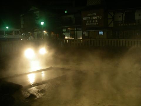 2週ほど前になりますが、群馬県六合村に花関連の視察に行って来ました。六合村と書いて《くにむら》と読むその村は、高齢者が元気に切り花生産をしているところ、草津の北東に位置する、尻焼温泉のあるところです。現地のかたにいろいろお世話になって、本当に充実した研修でした…で、仕事のレポートはさておき、そこで出会ったことや旨いもんのレポートです。まずは草津温泉の夜景、《湯畑》。草津と言えば、温泉・湯畑・湯もみ(ショー)。湯もみは見ることができなかったけれど、ライトアップされた湯畑は綺麗でした…。温泉は酸性で肌がつるっとするタイプ。いいお湯でした…