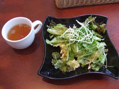 14日月曜日、休日出勤した代休で、相方が休みだった。昼食、一緒に外食。近くの「太陽のカフェ」へ。レジ前でかなり待った。家は11時半前に出たんだけど、それまでに店に入った人たちが一巡するまで待つことになってしまった。私は早く起きていたのに、くまさん、昨日の日帰り旅行(後日アップ予定)で疲れてなかなか起きてこなかったので、出かけるのもちょっと遅かった。レジには以前は観葉植物はなかったけど、今日見たら、ずらり。雰囲気はまあまあね。待合の近くの鉢に刺してあった鳥のピック。ケータイカメラなので、ちょっとピンボケ。こういう小物、アクセントが、この店は楽しい。大きな観葉植物の木に鳥の巣が飾ってあったり。平日ランチは休日ランチより少し安い。今日のランチにした。まずはスープ、サラダ。サラダもこれだけ食べればけっこうな量?暑かったので、私にしては珍しく、飲み物にアイスコーヒー。私のメインディッシュは目玉焼き乗せハンバーグとロールパン。くまさんは濃厚クリームソースのスパゲティ。満腹で帰宅。くまさんは睡眠私はブログ整理、メール整理など。あまりに暑かったので、3時頃、エアコンの効いたくまさんグーグー寝ている寝室へ。ちなみに私の仕事場(パソコンのある部屋なだけ?)は、まだエアコン解禁前。ちょっと体がだるかったし、猛烈に眠かったので、新聞を少し読んで、少しお昼寝。なんて幸せな生活そして、夕方。いや、もう夜の時間。7時少し前に目が覚めた。くまさんがお腹が空いたと催促。今日は義父母が夕方から観劇に行き、そこでお弁当が出るから夕食いらないとのこと。ピザを取って、DVDでも見ながらゆっくり食べるつもりだったけど、くまさんは外で食べると言う。ピザ、半額のちらしがあったのに。植物が干からびていたので、水遣りルックにサッと着替えて、私のテリトリーの植物に水遣り。再度、外出できる服に着替えて、夕食も外食。何を食べるかなかなか決まらなかったけど、いろんな店が入っている、近くのイオンのレストラン街へ。いろいろ見ていたら店舗がかなり変わっていた。そんな中で、五品(アイスクリーム付き)二人で3000円弱(税抜き)のセットがあった「にんにくや」に決定。五品セットのおすすめメニュー。梅酒ジンジャー。久々に少しアルコール。本当は体を温めるジンジャーに期待していたんだけど、聞いたら梅酒のジンジャーエール割りだって。だったら他のジュースとそう変わらない。まあ、いいや、と頼んだ。くまさんは大好きなコーラ。大根サラダとガーリックトースト。トーストは上にニンニクのすりおろしがたっぷり。メインのパスタは選べた。梅に惹かれて、鳥そぼろの梅しそソースパスタにした。鶏肉のガーリック揚げはセットの一品。なかなかおいしかった。ラストはアイスの温かいブルーベリーソースかけ。これがあったのが、このコースを選んだポイント! たまにはアイス、食べたい。普段は甘いもの、食べないようにしているので。本当はアイス、二つあったんだけど、写真は取り分けた後。一日、二回も外食。食費が痛いし、カロリー取りすぎ?たまにはいいっか。