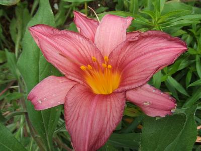 30日、やっと大雨が上がって花を観察。ちょっと萎れているようにも見える、庭のピンク?オレンジ?のユリ?ヘメロカリス?。雨で形が崩れちゃったのかな?先日も載せた、義母の鉢植えのクリーム色ユリ。前より開花した花が増えた。大成功!どのくらい咲いているだろう。花だけでも20~30輪ついているのでは?群生している。やっと蕊が出ていた、私の鉢植えのアブチロン。チロリアンタイプ。蕾はいくつもついているけど、今、ここまで色づいているのは二つだけ。5月に挿し木したばかりだから、早いといえば早いのか?5月下旬に実家でもらってきた、メランポジウムの幼苗ですでに開花。こんな小さな苗でも花がつくなんて、健気。パンジーの種収穫したら、西に黄色で、西側に定植予定。バラは今は開花しているのは、花芯まで見えてしまっている小さなミスティーパープルだけ。雨で痛んでしまったり、開きすぎたり。でも、何種類かでは蕾が大きくなりつつある。楽しみ、楽しみ。雨前にチュウレンバチに挿された新枝を観察。他にも見つけて、消毒したナイフで卵をつぶして、さらに傷口を消毒。青虫なんか出てこないで!しばらくは観察、続けなきゃ!☆★☆★☆★☆30日のその後☆★☆★☆★☆朝、ざっと花を見て、午前中、道を間違えながら荷物のお届けに車で出た。帰りがけに裁判所への書類も投函、のキャンペーン応募葉書もに持っていけば50円切手貼らずに済むので、局へ持ち込み。帰ってきて、の手入れをして写真をとって、ブログ記入。朝ごはんも食べたけど、そろそろお昼になって昨日の夕食の残りのネギトロの細巻き(朝も半分食べた残り)を食べ、メールなどへの返事を書き、14時ごろ、ちょっと休憩、とPCを切った。そしたら、5分とたたずに携帯に翻訳依頼が。PCとCCで来ていたので、またPCを立ち上げ(私のPCはパスワードもかけてあるので、立ち上がりが遅いし面倒)依頼文書を確認。7/1、午前11時納品と書いてあったので、休憩返上、慌てて翻訳にかかった。一部要約もあったけど、今回は調べ物がとても少なくてスムーズに進行、夕方には仕上がって、即で納品。あー、疲れた。ちょっと休憩、と少し横になったら、今度はくまさん帰宅。30日、ボーナス日なので、夕食、外に食べに行くことになっていた。ちょうど寝付いたところ(前日、夜中の3時頃寝たので睡眠不足だった)に帰ってきて「何食べたい?」と聞かれ、半分夢の中で考えたけど、和食としか思いつかない。くまさんが「三尺三寸箸は?」というので、それに賛成!お義父さん、お義母さんも一緒に、夕食へ。う~、食べ過ぎた。バイキングだから、と欲張りすぎ。睡眠不足と食べすぎで、超眠い