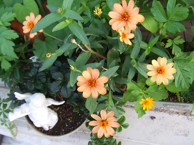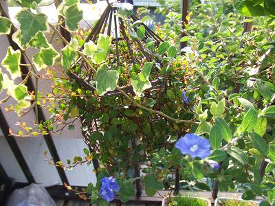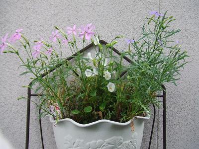 ちょっと前だけど、3日、大学でのHSK対策講座のガイダンスで美好に行った。高速道路経由で、ドライブ気分。降っていたけど。途中、カーラジオを聞いていたら、行きも帰りも、番組は違ったけど、今、名古屋で劇団四季が上演しているミュージカル「マンマ・ミーア!」のお話だった。これからご覧になる方もいるだろうから、内容は書かないけど(有名なミュージカルだから、内容を知らなかったのは私だけ)劇中にアバの曲が多様されていることを初めて知った。これは日本だけなのか、世界的にそうなのか知らないけど。実は、かなり前に中国で上演され、その記事を訳したことがあったので「マンマ・ミーア!」というタイトルだけは知っていた。でも、アバの曲が使われていることは知らなかった。かなり多くの曲らしい。で、ラジオで挿入歌が流れていたんだけど、そのうちの一曲、「ダンシング・クイーン」…これ、小学校のときの掃除の時間に流れていた曲いっぺんに頭の中は小学校時代にタイムスリップ。当時、小学校の放送部の選曲は、最先端?を行っていたんだ!他の曲も知っているのが多かったけど、曲そのものと、タイトルと、アーティストが今まで結びついていなかった。ちなみに、小学校の集団下校の時の音楽の一曲に「ユモレスク」もあった。音楽の授業で習って、「あ、これ下校の音楽!」って思ったものだった。実は、高校時代は、学校のクラブでフォークソング部(と言いつつ、ロックが多かった)でキーボードその他、人が足りないパートの代役で演奏していたから、音楽大好き!今は、最近発売になったB'zのアルバム、誰かに貸してもらえないかと狙っている。ネットで曲目は確認したし、曲の一部と動画も見たけど、ニューバージョンの曲もあるらしいので、それが聞きたい!ま、それはそのうち、くまさん経由で入手できる確率が高いのでおいといて、アバの曲がたくさん聴けるなら?「マンマ・ミーア!」見に行こうかな?内容もいいらしい。平日ならチケット、かなり割安!こんなこと考えながら、大学には予定の時刻より少し早めに着いて、近くの花屋さんで苗を物色。実はこれが、美好へ行くときの楽しみ!ここの花屋さん、なかなか品揃えがいいし、普段から安い。そして、今日はなんと、普段、78円の苗が一律50円!ちょうど、この梅雨や少し前の暑さでダウンした苗を植え替えしたかったので安さに負けて大人買いと言っても、50円の苗は、オレンジのジニア、青紫のアゲラタム×2、白のアゲラタム、青のイトソマだけ。あとは200円台だったシュガーバインと、バケツに猫がぶら下がっているミニガーデンピックを入手。もし、晩秋にこのバーゲンがあったら、パンジー山ほど購入、春先ならペチュニア類、大人買いだったろうな。ただ、残念なことに、前回、大量購入した時につくったポイントカード、なくしてしまった。20円で1ポイント、1000ポイント毎にしか使えないのであまり役に立たないんだけど400ポイント近くあったはずなので、残念。再発行してもらうことに。さてさて、ゲットした花たち、帰ってから早速定植。客間入り口のバラのトレリス上部のハンギング、イトソマとトレニアが植えてあるんだけどイトソマピンクは背が高くて花もたくさんついているのに、ブルーは淋しかったので一苗追加。ただ、花はあまりついていない。観葉植物、シュガーバイン。ちょっと鉢がないので、これは後日定植。同じくシュガーバイン。つるで伸びて、葉が付いている。ある計画のため、購入。シュガーバイン、上からの図。猫がバケツにぶら下がっているミニガーデンピック。汚れたり、バケツに水がたまって錆びたりするといやなので、ビニール袋のまま使用。白矢印のところに猫のピック、黄色矢印の方が青紫のアゲラタム。アゲラタムの前は青のロベリアがあったんだけど、夏を越せなかった。ロベリアが元気だった頃はこんなだった。。。玄関のハンギングの白ロベリアも左側がダウンしたので、左だけアゲラタム白に植え替え。白アゲラタムのアップ。これは白ロベリアが元気かりし頃。ポンポン咲きのオレンジジニア。まだ定植はしていない。西の黄色シリーズの定植は少し先。3日に購入した苗は以上。こちらはベランダに出たついでに撮影。ミリオンベル。梅雨のお湿りと少し前のお天気でとっても元気に咲いている。私の精神的エネルギーの素。