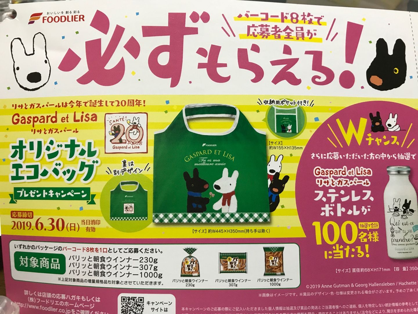 パリッと朝食ウインナー バーコード8枚 リサとガスパールオリジナルエコバッグ 6月30日〆切