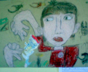 行ってきました!お姫の学芸会。でも・・・そのお話の前に・・・またまたドタバタ劇がありまして(-_-;)。。。AM8:40パパさんが仕事先からちょいと抜け出し、愛娘のために学校へ来てくれる事になり、校門で待ち合わせすることに!チビ殿とワタシも急いで会場へ行きました。パパさんと一緒に会場入りしたところ、もう会場となる体育館は満員状態。席を取りビデオをスタンバイするパパさん。『三脚は??』(@▽@;)ゲッ!!!!!・・・忘れた!!パパさんが来れないものと思っていたワタシは三脚なしで撮影しようと思い持ってこなかったのです。あと10分ほどで、1年生の『開会の言葉』が始まる・・・どうしよう・・・『走って戻って来い!何とか間に合うから(・へ・;』パパさんからの指令!『ハイ!走ります=33』必死に走り、息も絶え絶え状態。。。自分のドジさに呆れながら猛ダッシュ!!何とか間に合いましたが・・・やっぱり三脚なしの撮影は無謀だったかも知れません。どこの家庭でもみんな三脚を立ててゆっくり子供達の演技を観ていましたから(~_~;)しかも!?長い時間同じ姿勢、同じ位置を保つのは腕が笑ってしまいます。走って正解!でした。(クタクタでしたが・・・運動不足を実感)さて!お姫たち1年生の演技ですが、思った以上の素晴らしさでした。はっきりとしたセリフまわし!動きも機敏!堂々とした演技!感心してしまいました。これが数ヶ月前まで幼稚園や保育所に通っていた子供達?と思わせるほどの成長ぶりに、ただただ感激してしまいました(ToT)お姫のセリフ『おかあ~~さ~ん』もちゃんとワタシの元まで聞こえてきました。思わず!『は~~い!』と返事をしそうになりましたょ(^_^;)本日は、『母のドタバタ劇』に『お姫達の劇(学芸会)』と我が家は大忙しでした。【おまけ】お姫達1年生の校内図工展が教室の前の廊下に張り出されていました。題は『むしとなかよし』おもいおもいに自画像と虫の絵を描き、はじめて絵の具を使い書いた作品らしいです。