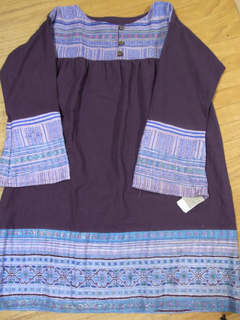 久しぶりにこのカテに出没。先日届いたばかりで数時間しか着用していません。只今大好評中のワンピーズ!!【アソート】モン族クラフト刺繍使い・長袖ワンピ アジアンファッション エスニックファッション完売色のパープルです。交換での希望者が居なかった場合には半額でオクかフリマに出品予定。にほんブログ村