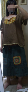 今日はフリマです。予定よりずっと早く準備が出来ました。うぅ・・かなり気に入っていたけど出番が無かった物、けっこう出しました。明日は病院で一番火傷の酷い所に皮膚移植します。ハッキリ言って病院代デス。先日も夜間救急で総合病院に行ったので、総合病院の手数料と夜間の手数料と2つ加算されてバカ高い治療費。町医者に行けるんだったら行くけど夜怪我したんだもの(涙)先日買ったマーブルマーケットとチチカカの商品は給料日後に届くように着日指定しました・・。けっこう前に到着していたこちら、今まで出番無く保管されていましたがやっと出番の時期。インドネシア*フローレンス島*希少なマンガライ古布使用!*メール便可能* 一点物マンガライミニスカート!スカート単体で履いている姿はイマイチなのですがこんなんどうでしょう。コーデしているのは春先にリアル買いしたこちらの七分袖ブラック去年?一昨年?に東巴さんの共同購入でイロチ買いしたキャミチュニックのブラックを重ねています。東巴さんオリジナル商品でしたが今年もこれ出すかなと期待していたけど出ませんでしたね~。ワイン系とブラックの2色持っています。ボトムは今はもう無きDUEBELLさんのライクラ七分丈ブラックパンツです。あぁ・・DUEBELLさん戻って来て欲しい(涙)スカートの柄もバッチリ好みでした。実物とは色味が違ってた~!なんて事よくありますから。。 ポチ応援よろしくお願いします♪すぐ順位下がっちゃうのよね・・ガクッにほんブログ村